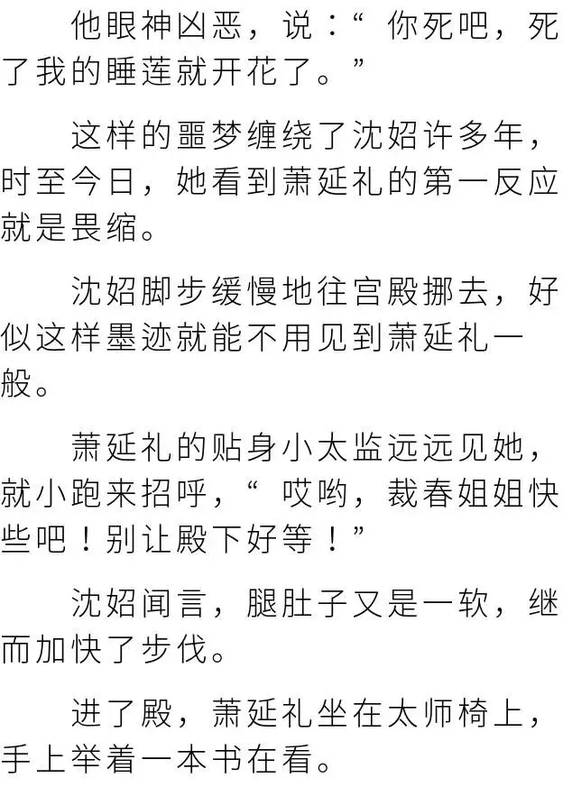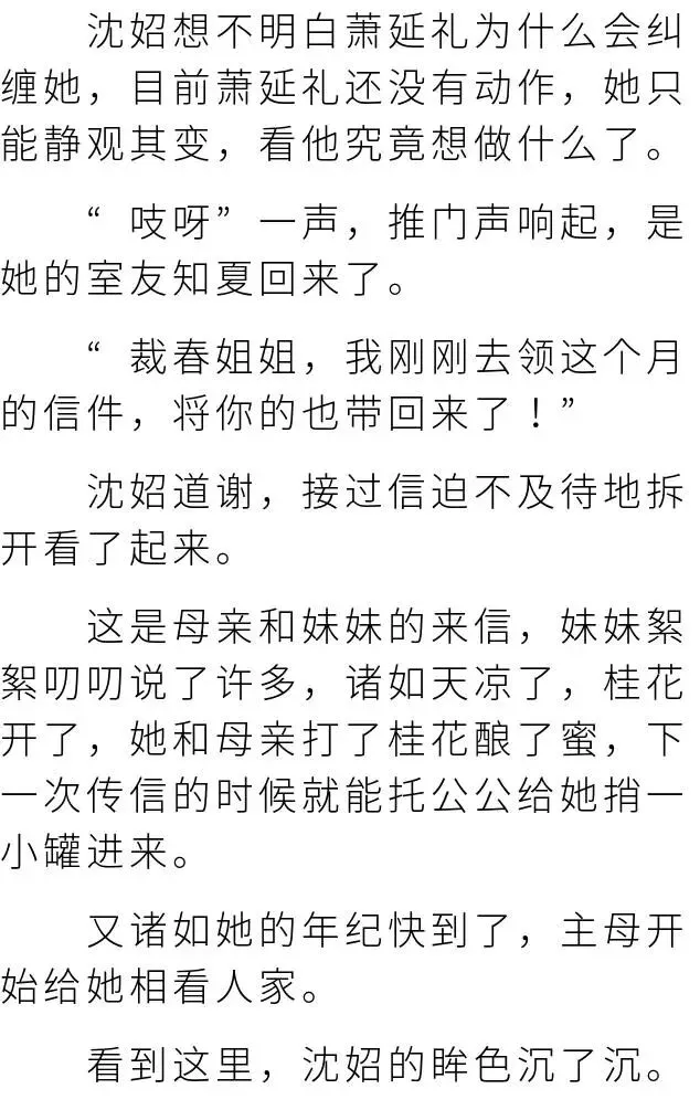萧延礼冷飕飕的声音在沈妱背后响起,沈妱后背发寒,在背后告小主子的状,被对方抓了个正着。
