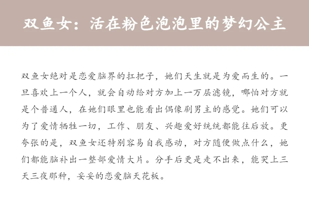 说到恋爱脑这件事,真的是有人谈个恋爱还能保持理智,有人一恋爱就像换了个人似的。特别是有些星座女生,一旦陷入感情就完全沦陷,眼里心里全是对方,恨不得把全世界都给对方。她们可以为了爱情放弃很多东西,甚至连自己的原则和底线都能一退再退。今天咱们就来聊聊那些属于超级恋爱脑的星座女,看看你或者你身边的朋友有没有中招。