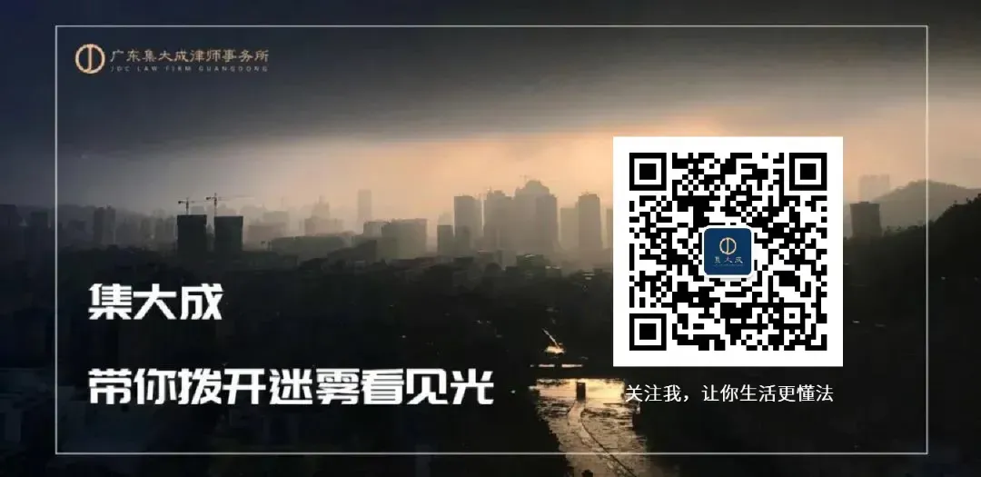 广东集大成律师事务所,成立于1994年,全力以赴每一个案件。如果您最近遇到烦恼之事,想得到专业的法律服务,欢迎拨打电话或者扫码添加下面的微信进行咨询: