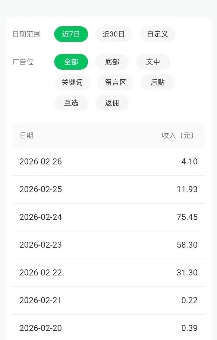 正月初十:推不动了,慢悠悠增了1000多的阅读量,收益4.1元。