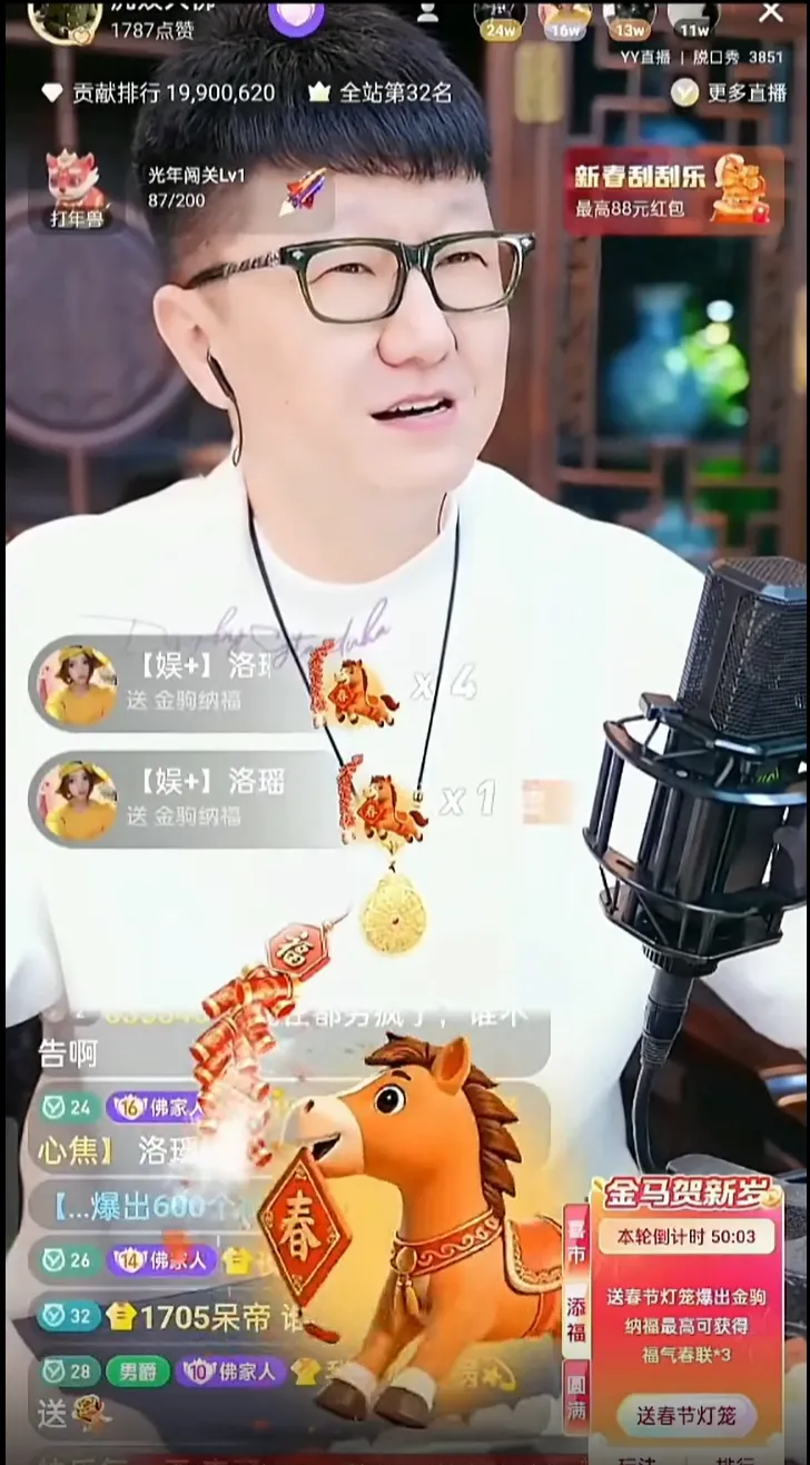 洛瑶在DY直播了,回YY给大佛好哥哥刷了礼物,给大佛高兴坏了,感慨说自己人品没毛病,以现在自己的处境,还有人回来看自己,身边依然有人跟着,这就证明了一切。