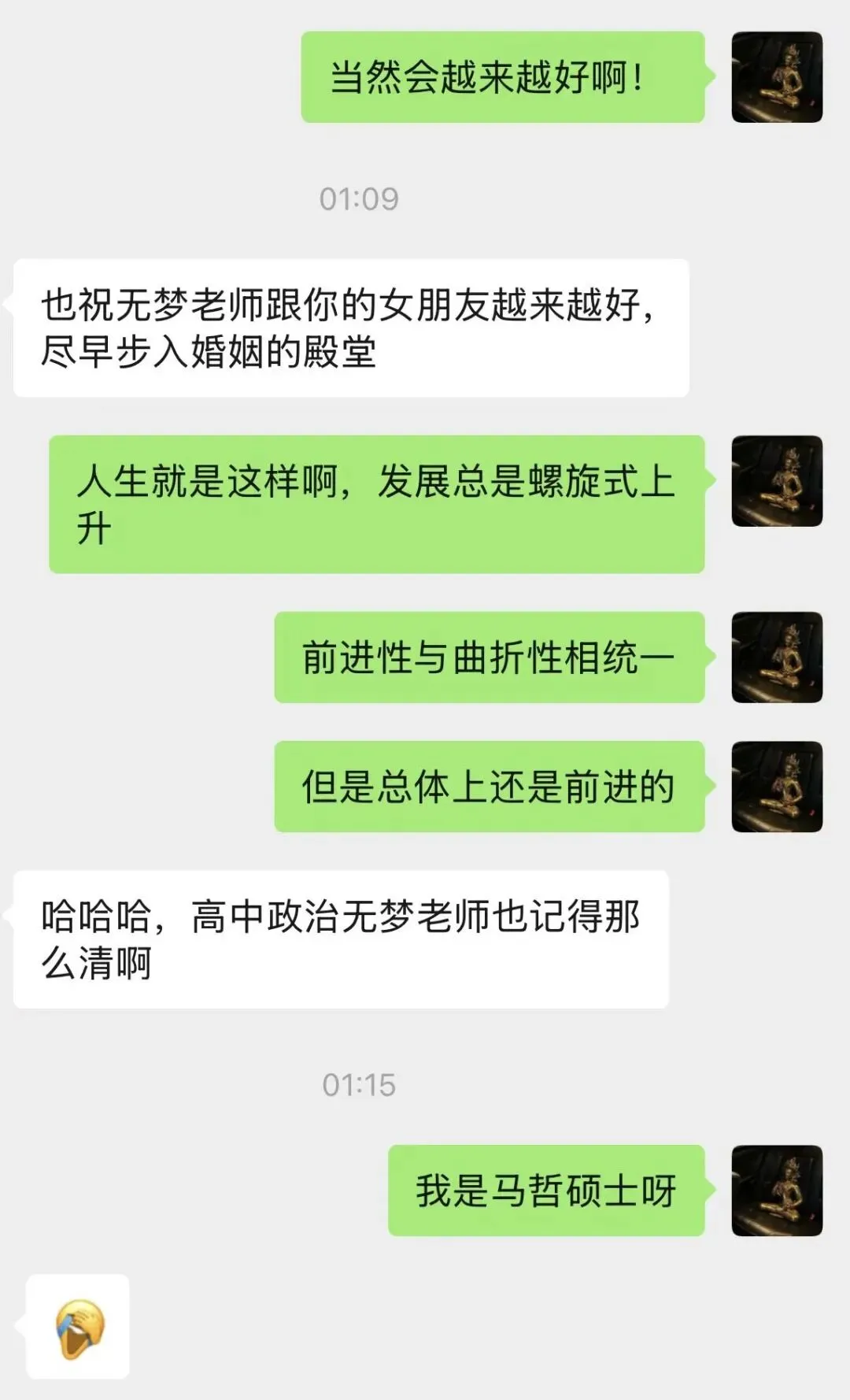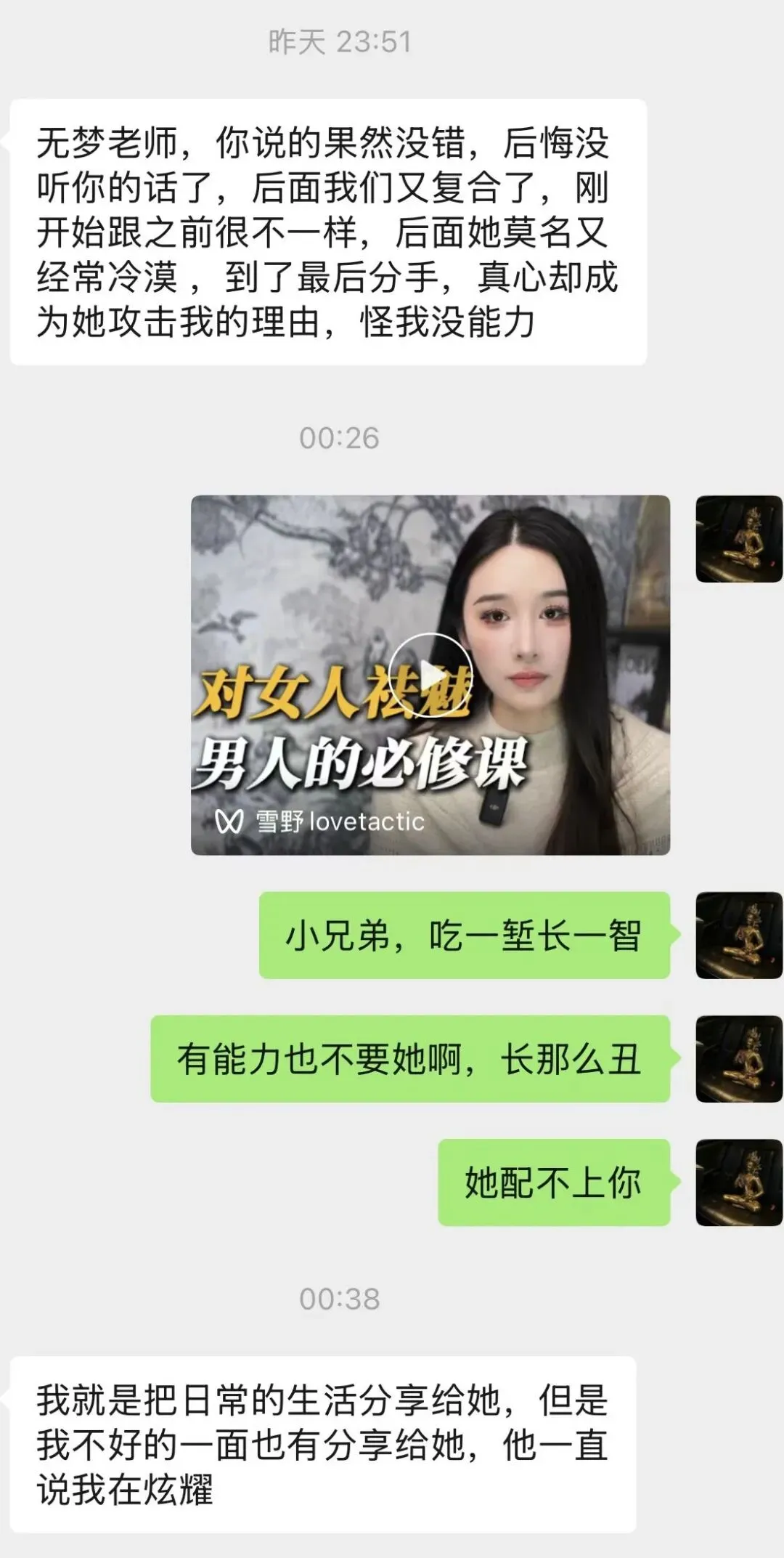 前一阵子劝一个小兄弟,早点离开不合适的人。昨天他给我发信息: