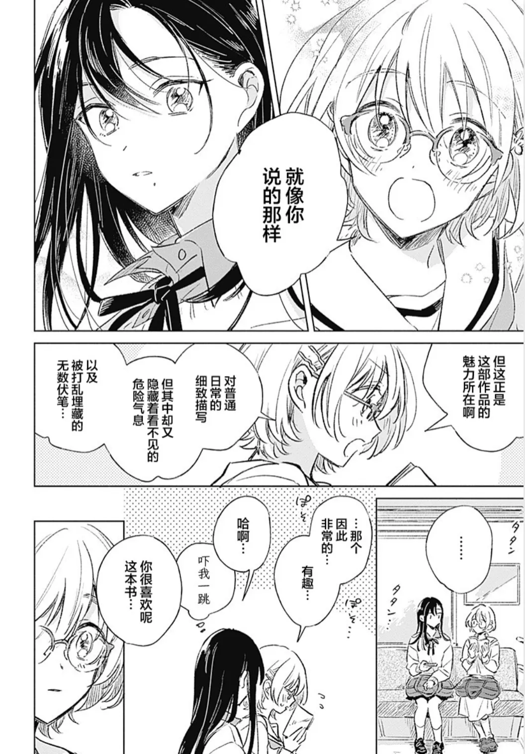 因腿伤退出排球队的高峰,与热爱阅读的咲仓。一次偶然借错的书籍,让两条平行的放学路有了交集。她向她讲述书中的世界,她因她寻找热爱的事物。这份始于图书馆窗边的心动,比恋爱更青涩,比友情更绵长。