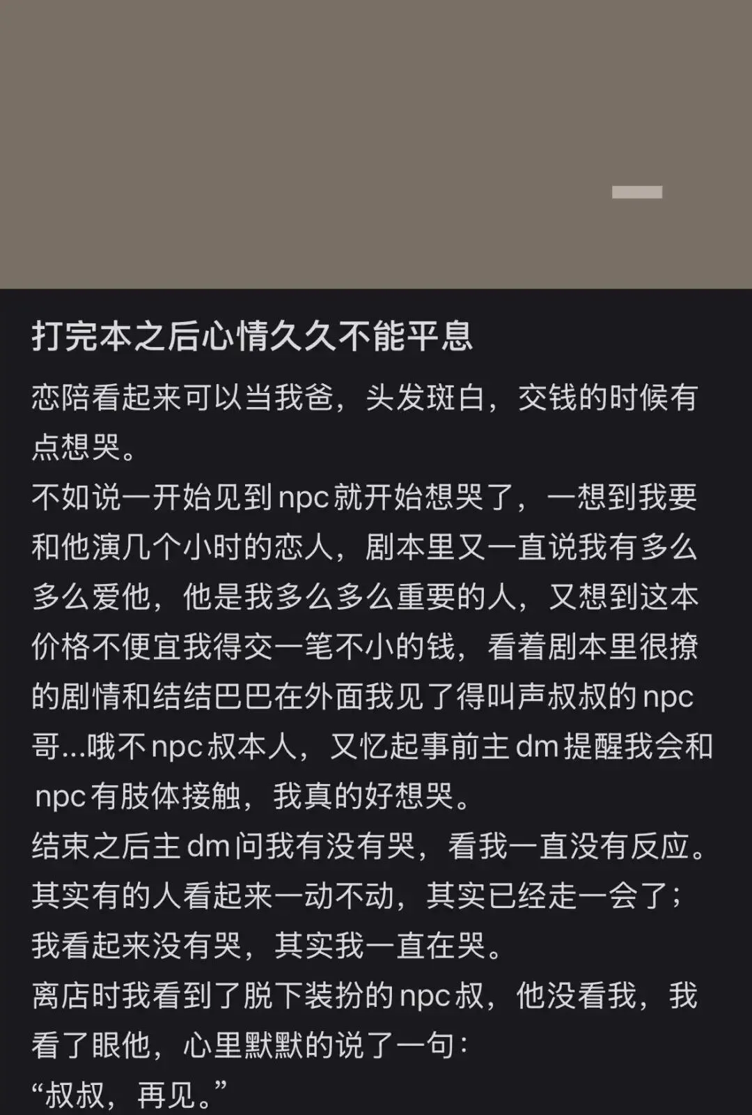 如果当着一个爹系(看起来可以当你爸的意思)的DM,还能哭得喘不过气,只有两种可能:一他那沧桑稳重的长相,唤醒你的原生家庭创伤了;二想到这一场交的钱,泪如泉涌。