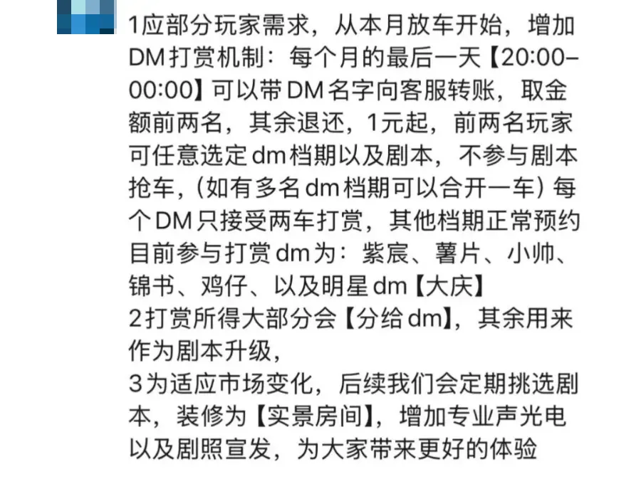 聪明的人是不会花钱找不痛快的,所以很多想玩恋陪位的人,为了和DM谈一场10小时恋爱,就需要给其他的玩家一点甜头吃,给点补贴,甚至免单。