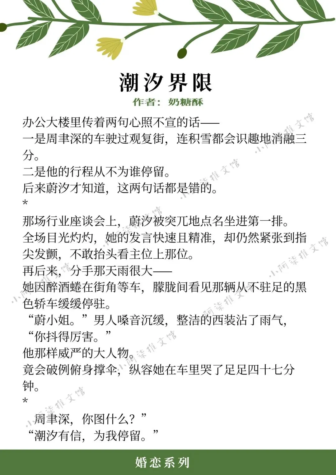 ❖《潮汐界限》作者:奶糖酥(理智明媚基层干部vs引导型政圈大佬,上位者低头,机关高干文,年上)