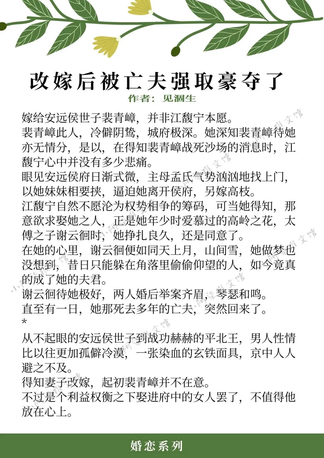 ❖《改嫁后被亡夫强取豪夺了》作者:见涸生(坚韧美人vs偏执王爷,打脸真香,强取豪夺,追妻火葬场)