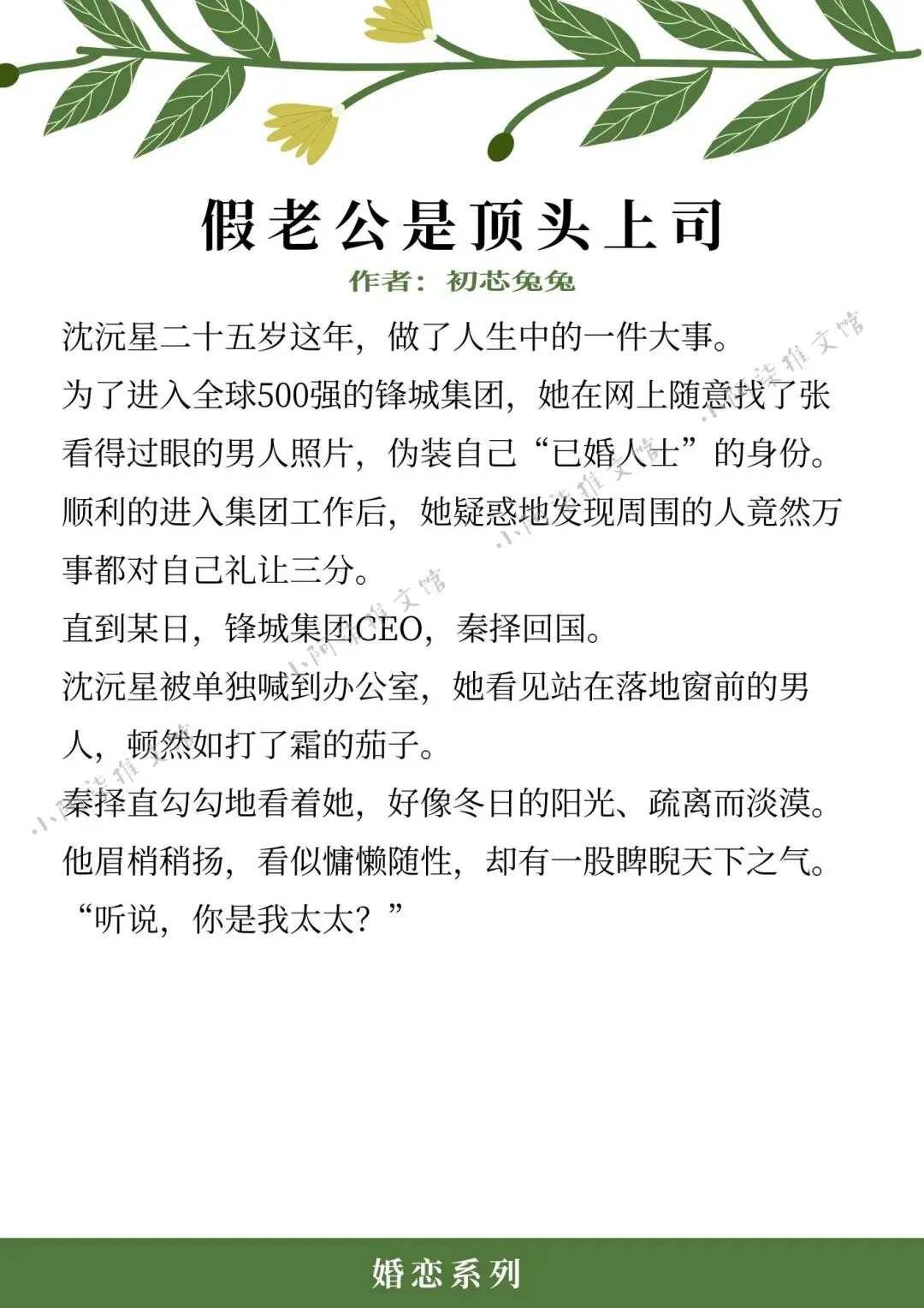 ❖《假老公是顶头上司》作者:初芯兔兔(腹黑嗲系甜妹X 清冷蛊王资本家,先婚后爱,假戏真做,高岭之花下神坛)