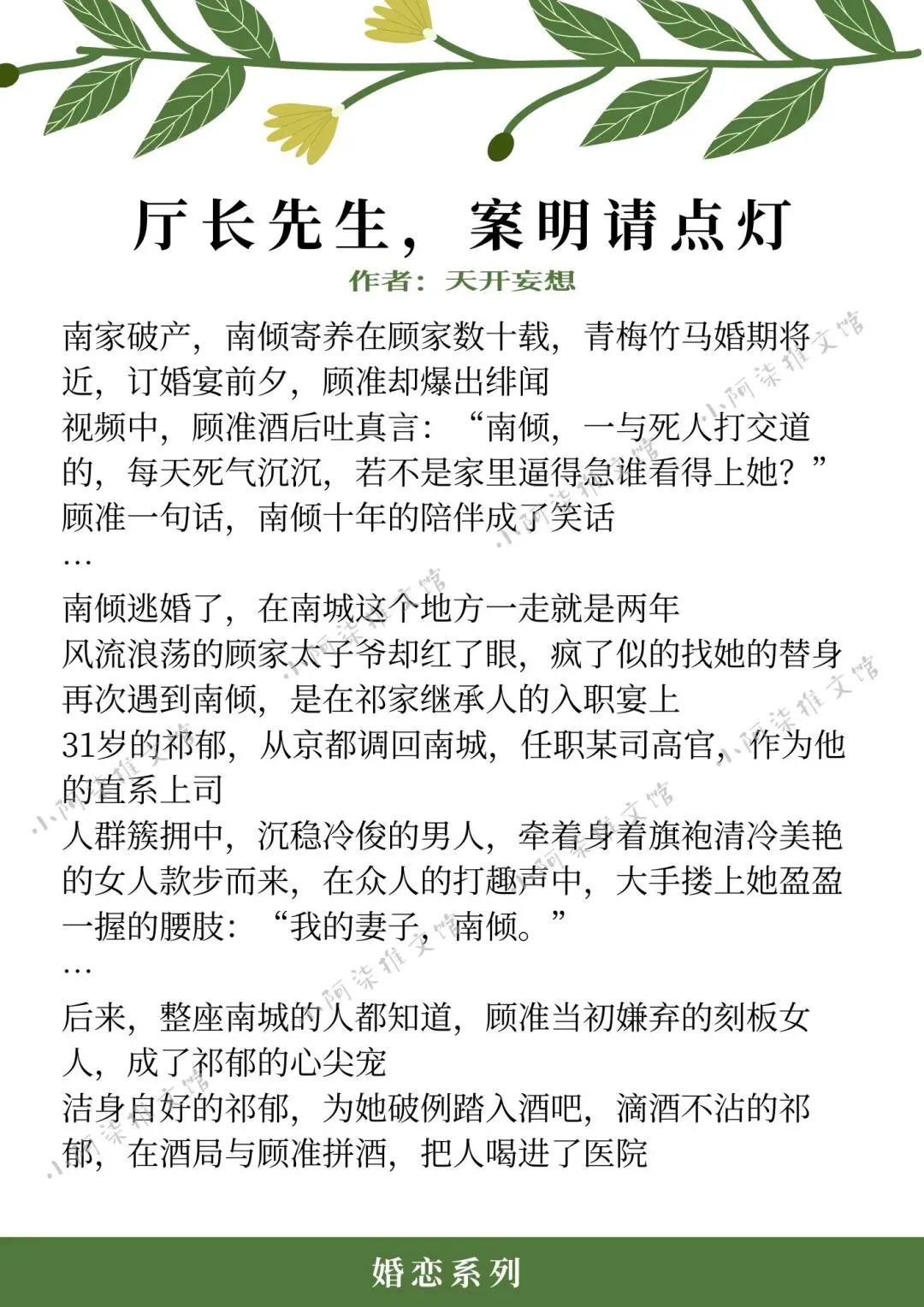 ❖《厅长先生,案明请点灯》作者:天开妄想(入殓师清冷美人vs高官冷淡爹系,先婚后爱,男二上位,刑侦悬疑,年龄差)