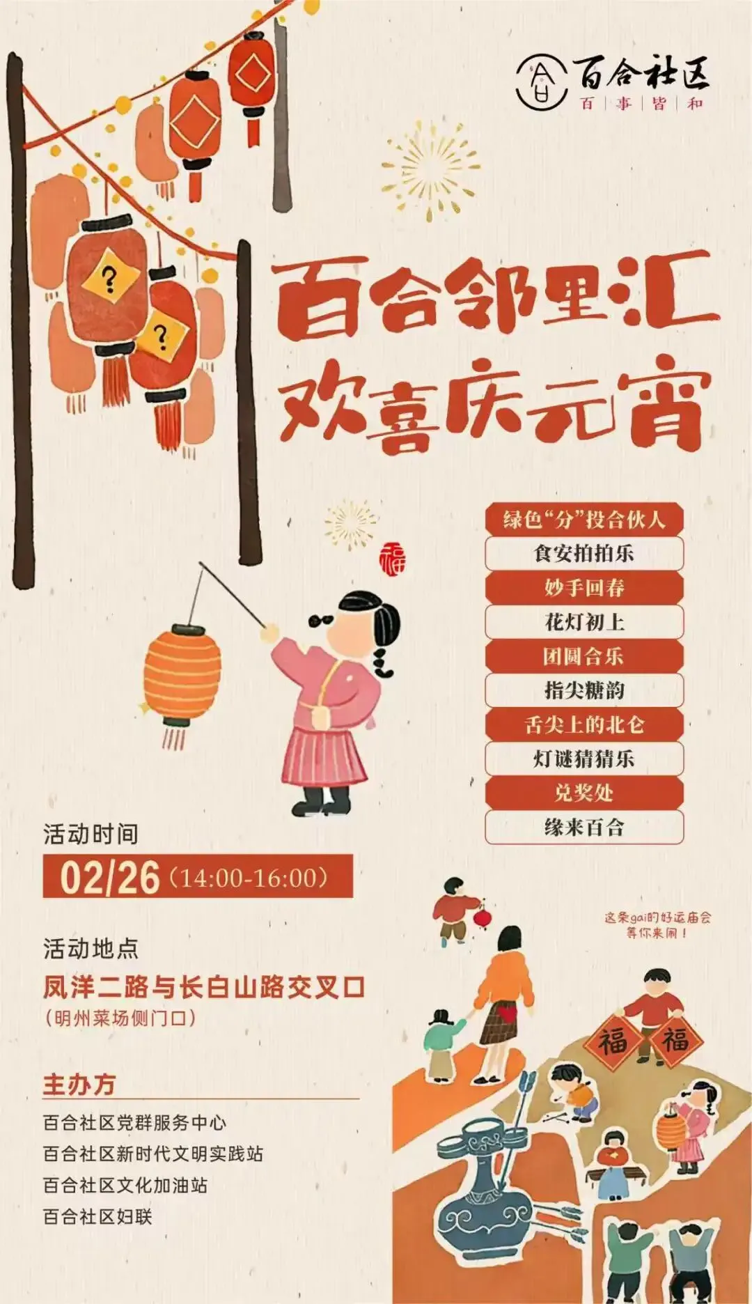 这个元宵节,在百合社区,团圆的味道里,悄然融入了幸福的期许。愿每一份真诚的相遇,都能孕育出美好的故事。