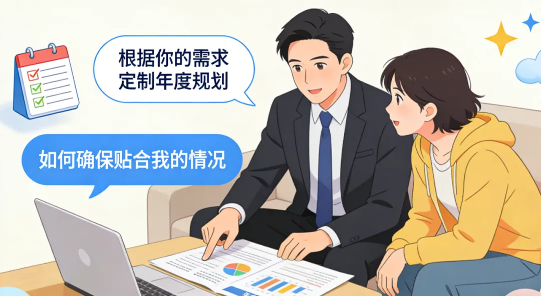 与顾问深入沟通,了解年度规划如何为你量身定制。在初次咨询中,你将能清晰感受到专业服务的价值所在,并完全自主地决定是否开启这段高效、深度的年度旅程