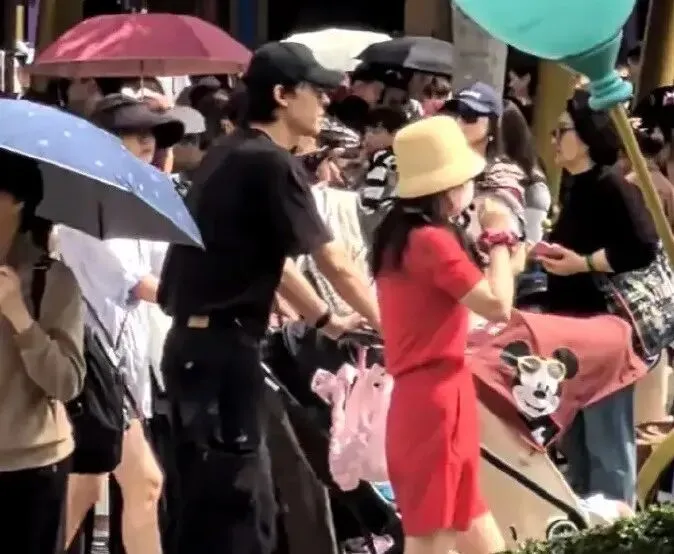 2023年底,两人香港迪士尼同框,张雨剑抱娃,吴倩拎包。