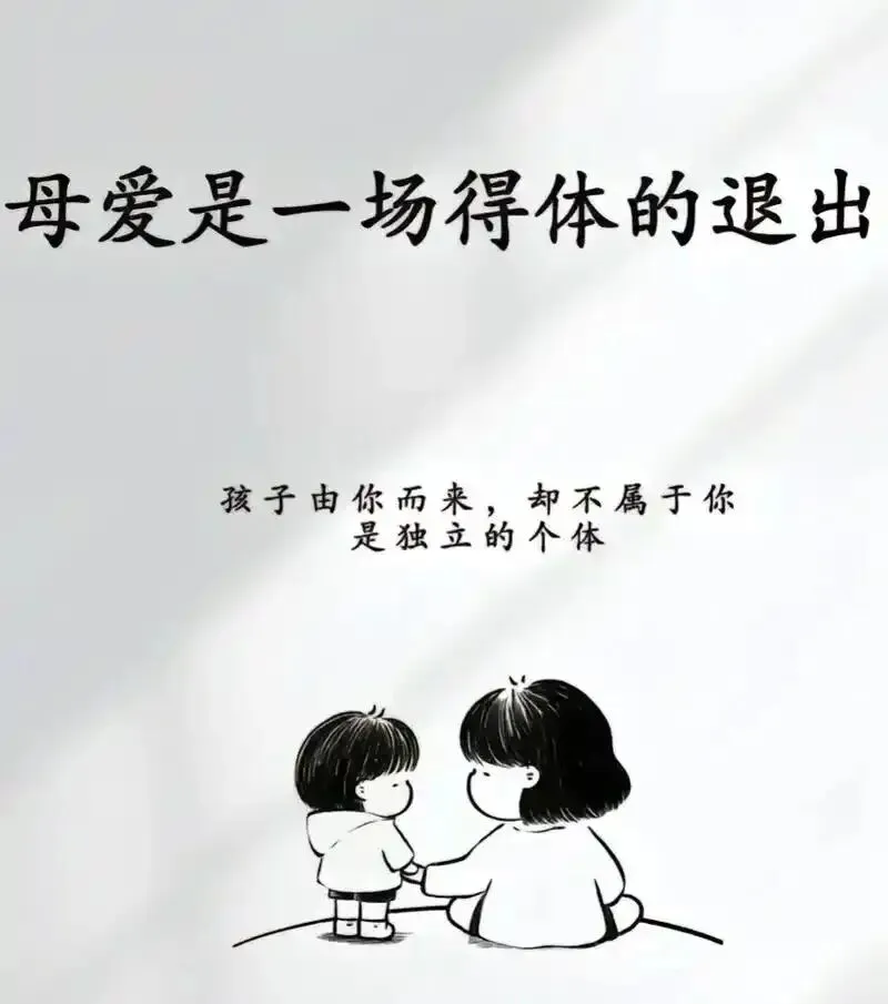 “孩子由你而来,却不属于你,他是独立的个体,母爱终究是一场得体的退出。”以上这段写出来,与学生家长共勉!
