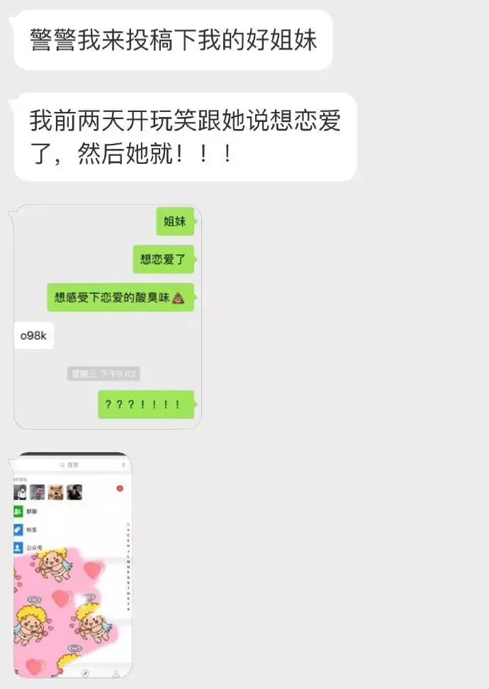 ▼哈哈哈哈哈哈............前两天开玩笑跟我姐妹说想恋爱了.......没想到她就.......