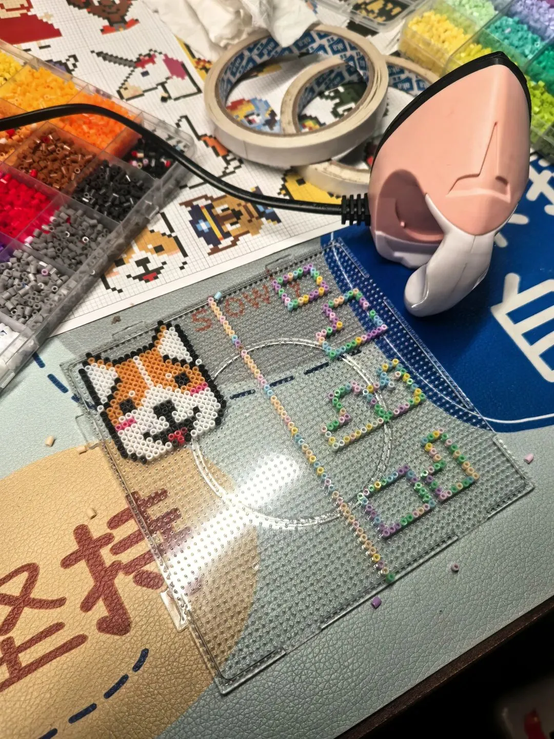 今天又陪依依做了拼豆,这只小柯基是我第一个作品,还有一点瑕疵,明天继续,这小玩意儿还真是让人上头啊