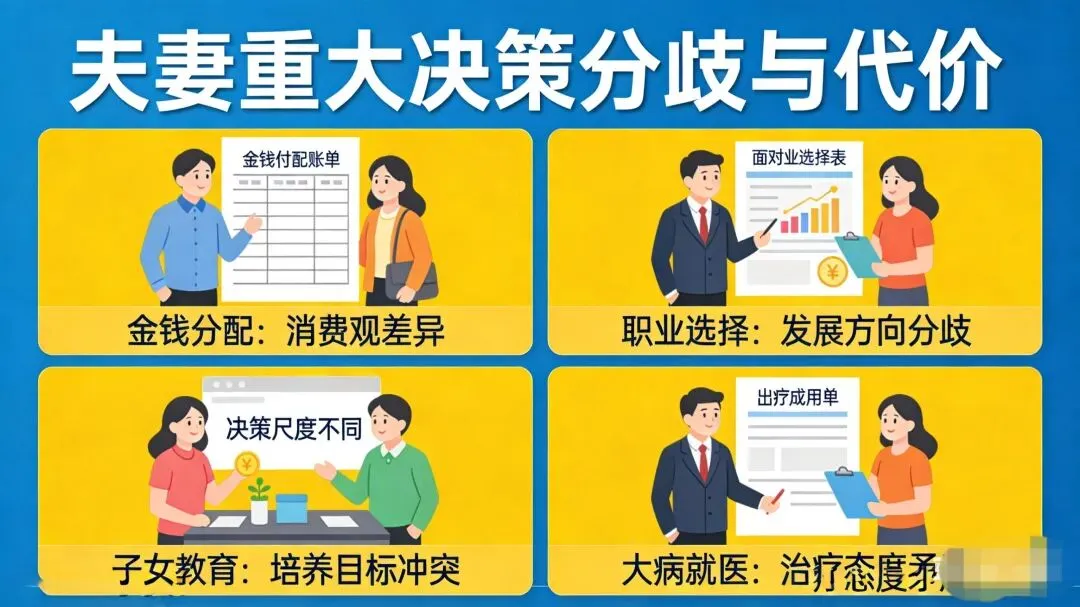 金钱分配、职业选择、子女教育、大病就医……你们判断事物的尺度完全不同。每一次沟通,都是一场消耗。长期内耗,足以磨掉耐心、温柔与坚守。