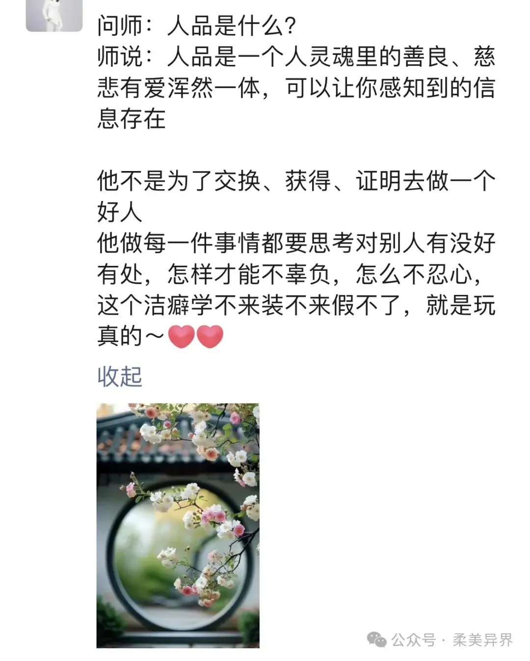 人品这个玄乎的概念其实也是相对的定义,仁者见仁,智者见智,每一个人看同一个人同一件事都会意见相左,一点也不奇怪,每一个人的认知、想法、环境等都会影响自己的判断,那你就只能跟着自己的心选择就OK了。