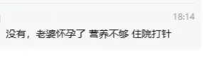 小奇还给分享了妻子住院养胎,字里行间满是即将为人父的期待与温柔:“没有,老婆怀孕了,营养不够,住院打针。”