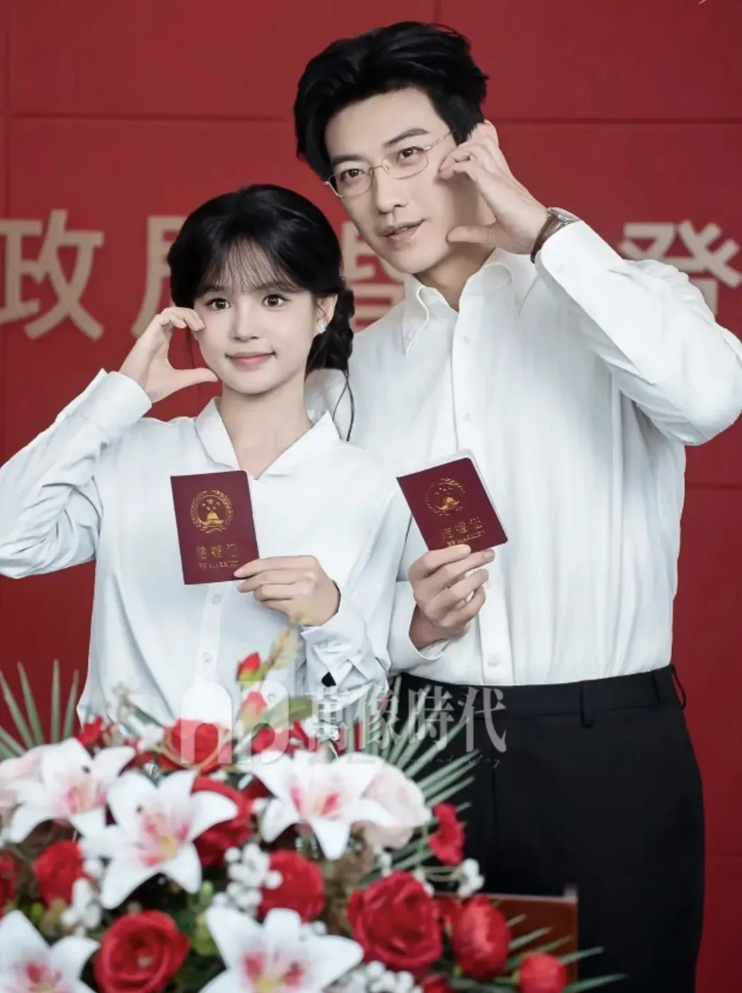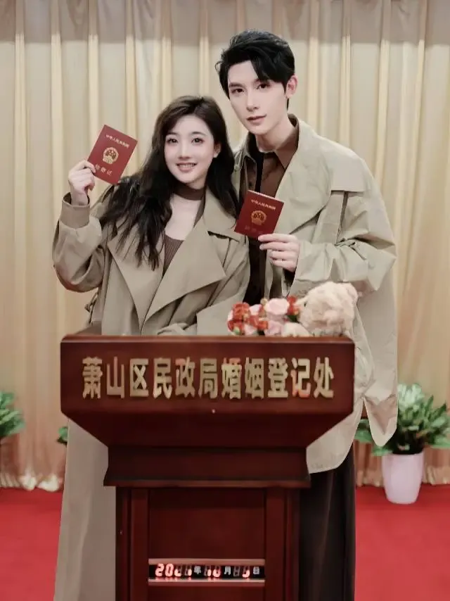这一对是去年10月9日领的证,他俩拍戏都不是公费恋爱了,是纯纯的挣钱养家啊。