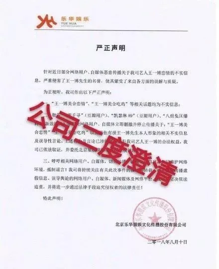 乐华娱乐的反应超快,8点就发声明:严重失实!设计构陷!蓄意欺骗!律师已取证,追究到底!