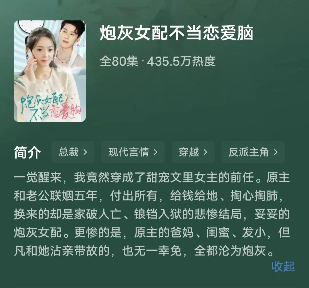 🎈这部穿书豪门甜宠轻喜剧,主角脑回路特搞笑好玩,女主演员许丹真的很适合这类古灵精怪的人设,男主陈景赫也很🉑,这部不穿西装痞帅痞帅的!每集都有笑点,男女主还有男二演起来都太自然了,全程笑着看下来的,对话都很好玩!