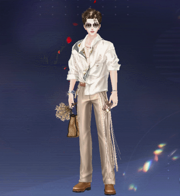 本期崖暮奢旅套为璀璨超凡换装套,装备套装即可换装。
