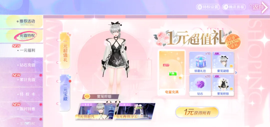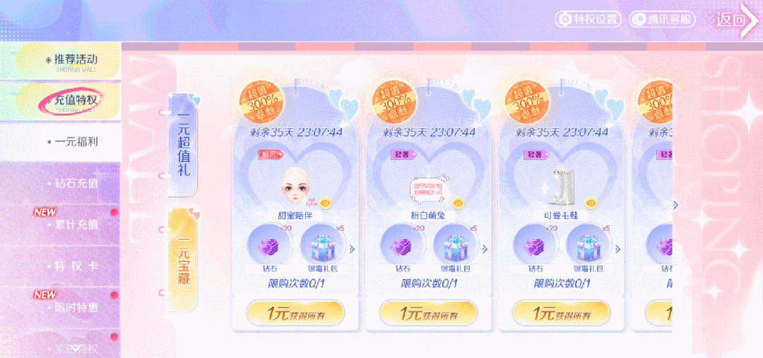 入口:商业街-充值特权-一元福利