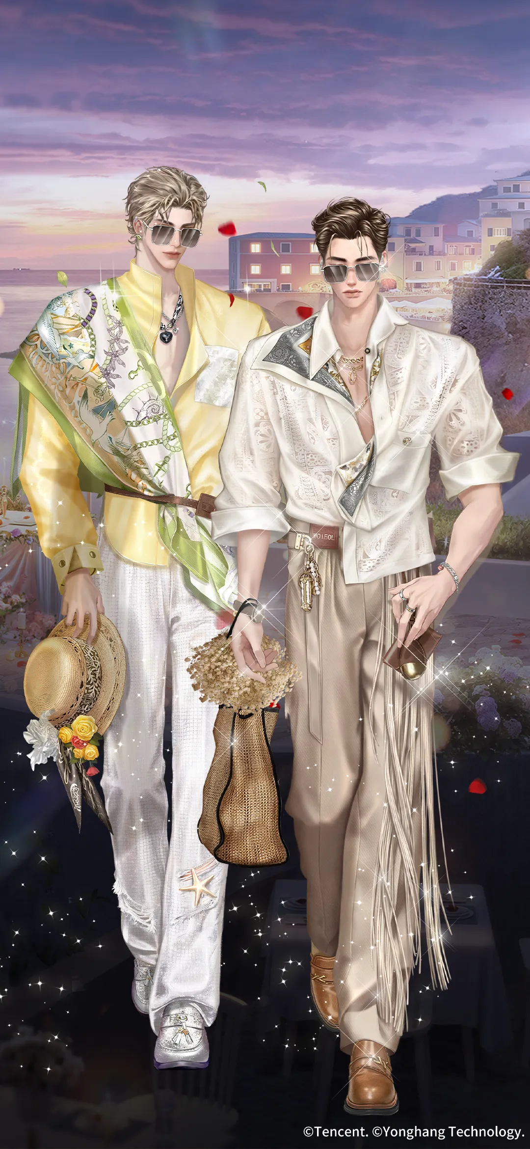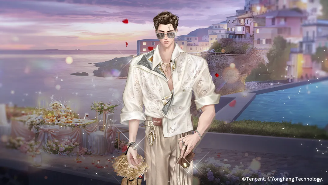 斜阳熔金之际,他身处绮宴之侧,沉醉此间温柔暮色~