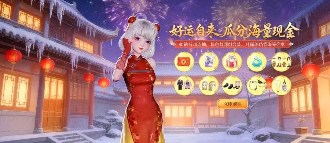 活动期间,玩家同时购买钻石新春卡与银霜新春卡,即可解锁随机钻石抽奖1次,保底获得588钻,最高赢2888钻!