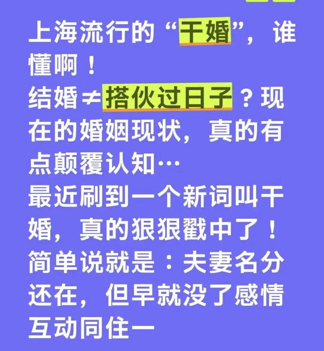 2026开年,听说一个新词叫做“干婚”。据说是起源于情感界比较先锋的城市——上海。