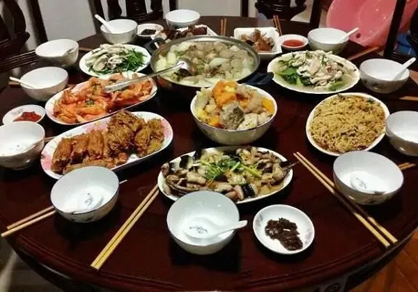 吃饭呢,满桌都是大鱼大肉,爷爷面前却只有一盘养生的清水煮白菜和几粒枸杞;