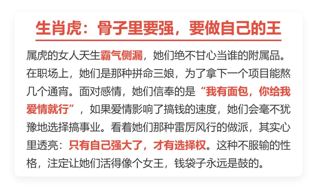 说白了,女人手.里有钱,说话.办事才.有底.气。愿咱们.都能.像这三.个生肖.一样,兜里有.款,眼里有.光,把日.子过成.自己想.要的模.样!
