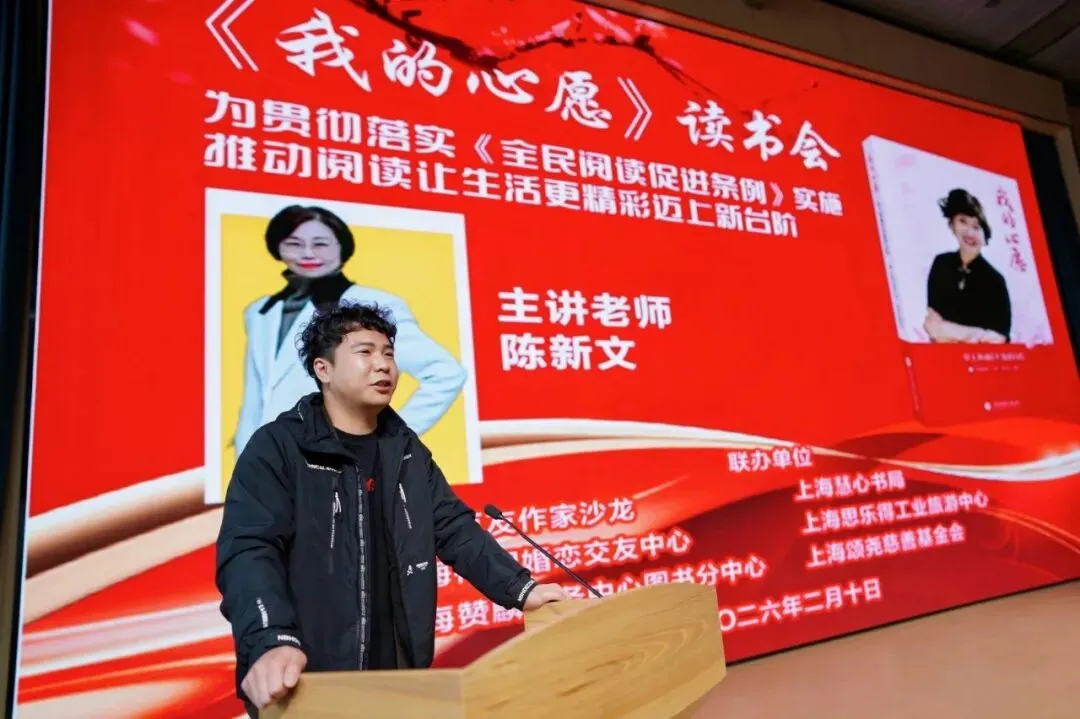 在讲台上,他很快转入正题,深情地说:华夏祖先,对婚恋和生育一直极为重视,没有家庭延续、人口繁衍,就没有国家的未来,民族复兴也没有了底气。我认为,婚恋和生育,就是习主席一直强调的“国之大者”。而《我的心愿》这本书,正是从这个高度,彰显了“上海第一代红娘”代表的柔韧性格、强烈事业心和家国情怀。上海市民政局婚姻管理处原处长的沈家观、复旦大学教授、作家梁永安分别写序,指出上海红娘写自传的,几乎是第一次、第一人;社会十分需要这本书。著名作家叶辛、国家一级导演张文龙,浦东新区综合党委原副书记田继涛,市婚介协会会长徐天立等都高度评价,一致认为,梅园婚恋创始人红梅老师的经历,成为上海改革开放以来,婚恋专业机构的阶段性发展史。