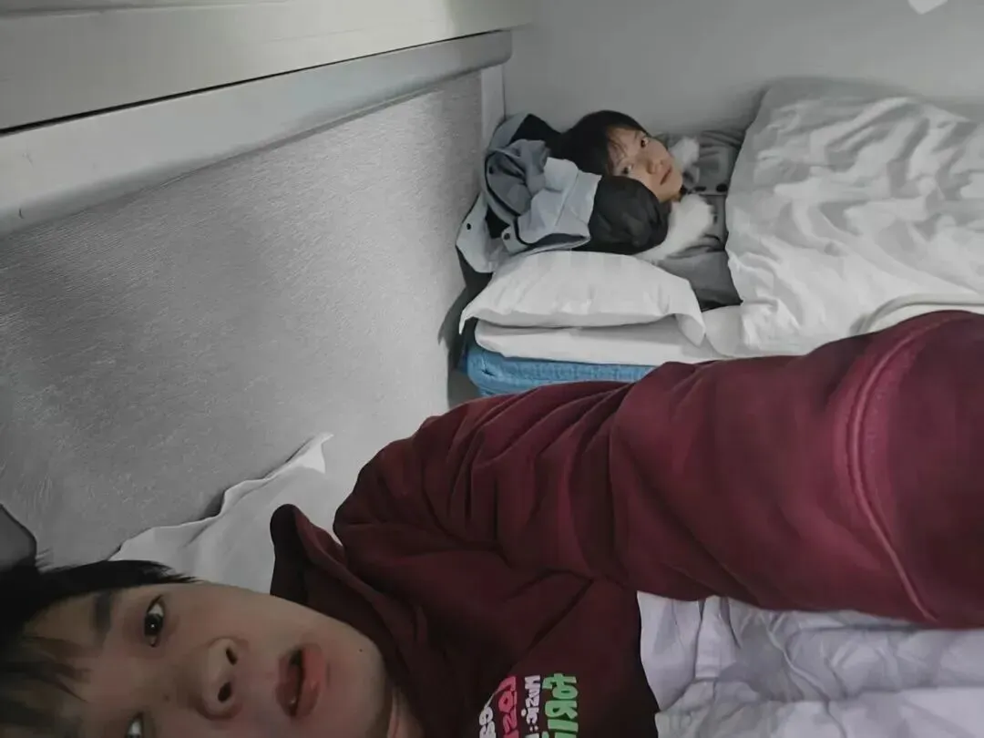 综合考量时间距离选择了卧铺出行,有意思的是某人在路上惹我生气了,我生闷气,他没有发现,也不知道我为什么生气,还在那笑嘻嘻的拍照片,于是就有了这张我在恶狠狠的盯着屏幕的照片,当时差点因此旅行结束直接返程回家