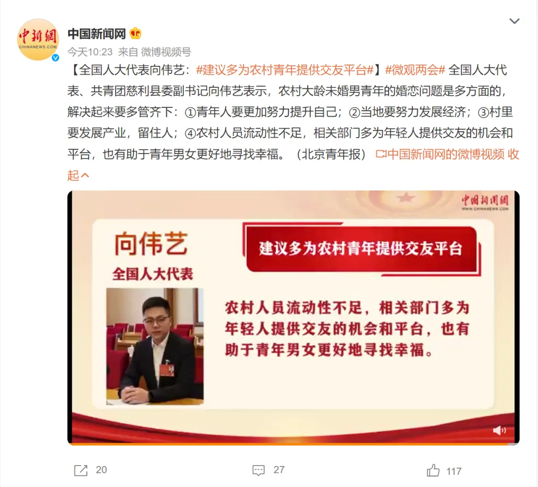 4、最后,相关部门也应该多为年轻人提供交友的机会和平台,城市青年相亲的机会多一些,农村本来就人员流动性不足,多搭建平台,也有助于青年男女更好地寻找幸福。