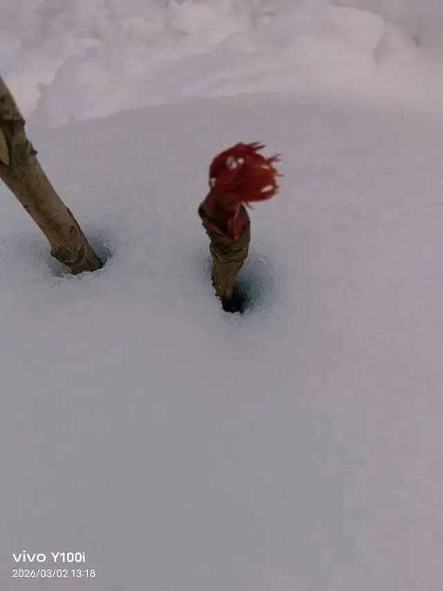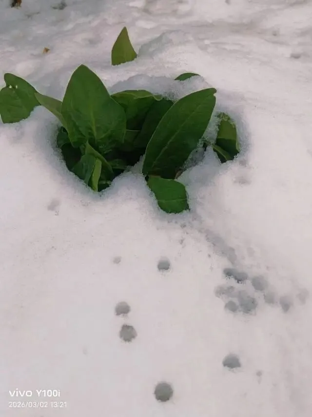 雪后花园,简洁清灵寻觅,春色串串迎春,似梦似幻菠菜的叶尖儿,如春之眼咦,两叶葱绿是春的触角么棵棵牡丹,花芽饱满那一抹绛红,竟如此超然