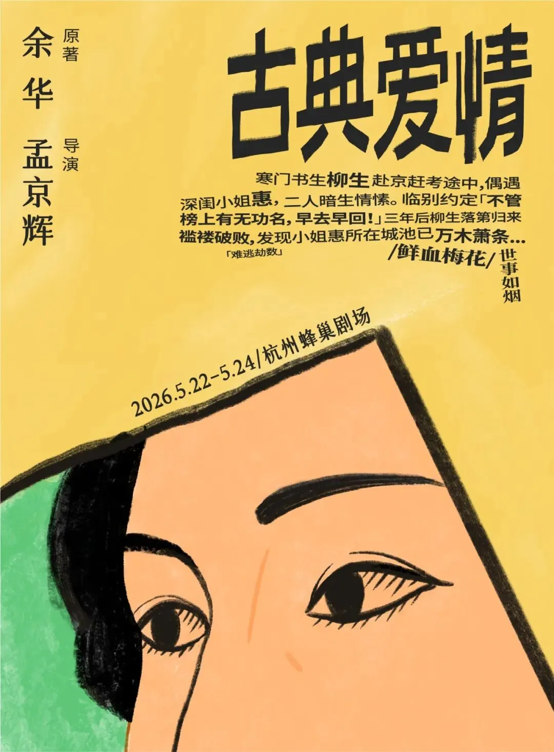 作为著名作家余华和孟京辉导演的三度合作,《古典爱情》延续《活着》《第七天》的全国性戏剧热潮,已掀起又一波观众热议!危险凄迷的爱情与生存,古典爱恋和现代柔情结合成一杯恍惚迷醉的美酒。《古典爱情》带来的美学快感:疯狂、冷冽、血色。在古典范式爱情的浪漫幻梦下,藏着我们每个人都在面对的生存命题。余华用文字的“冷”揭示生存本质,孟京辉用剧场的“热”激活观众感知。余华用书本的“冷”将苦难蒸馏成哲学寓言,孟京辉以舞台的“热”把荒诞烹煮成社会镜像。