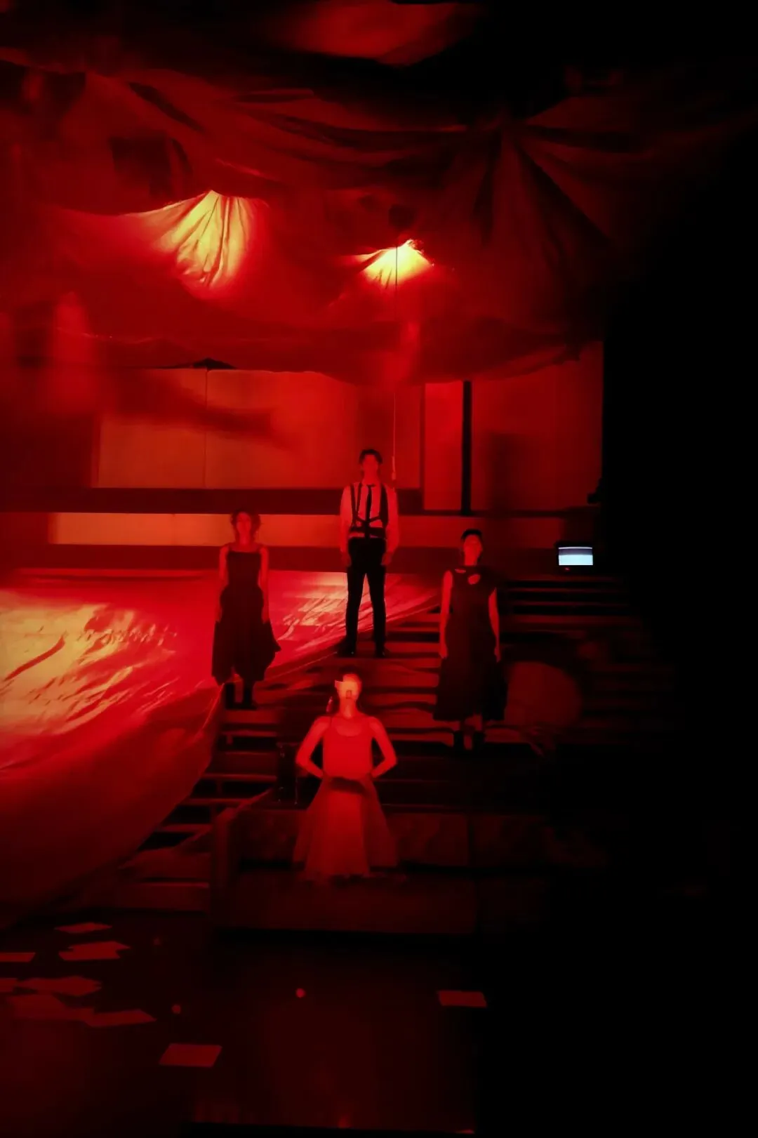 空花组以极具实验性的表演方法完成了一次身体极限的挑战:时而木然如尸,时而嘶吼如狼,每位演员在角色之间剧烈切换,一次又一次在肢体与光影之间崩解、重构、诞生。《古典爱情》为观众呈现的是一个情感迷宫,正如余华所言:“他一直在走,他不知道为什么走,也不知道会走向哪里。” 当古典褪去意义,答案只能在风中飘荡。我们将在生活的转角处相逢,在无常的命运中找寻更真实有力的答案。