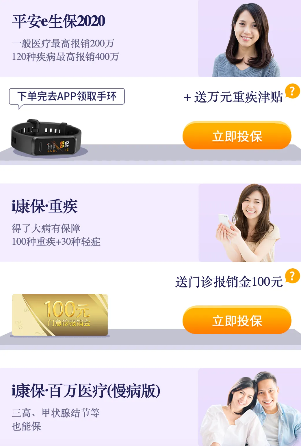 而除了慢病版医疗,平安健康APP还推出了多种保险种类。