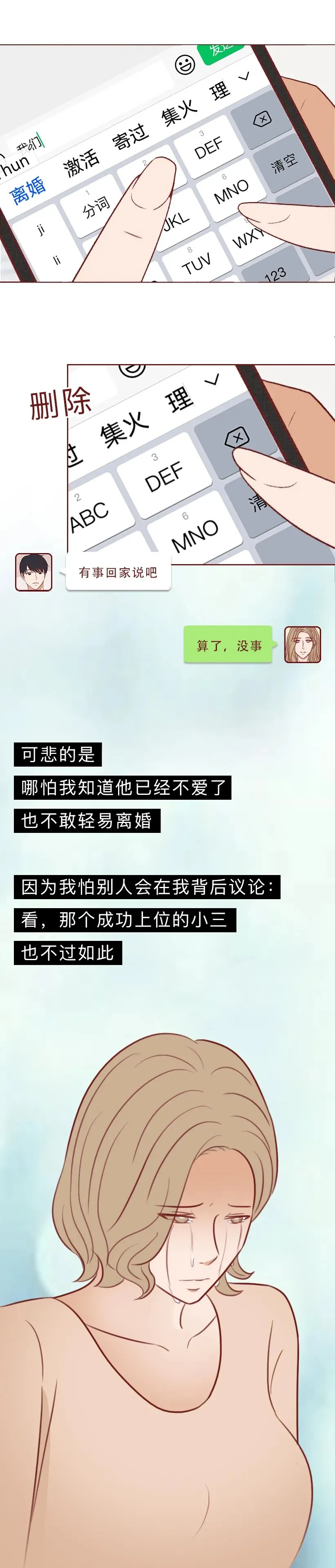本漫画根据真实故事改编。其实小三上位后的生活也没有特别好过,大众误以为小三非常精明漂亮,但日常生活中的小三其实长相很普通,思想也很普通。之所以会变成小三,是因为她们需要存在感,需要用外界的眼光来证明自己的优秀。然而上位后,要面临双方父母的不支持,旁人的不祝福,还有丈夫的前妻、孩子的存在。日子可以说是如履薄冰,而且抢回来的东西,哪怕拿到手觉得不好,也不敢轻易松手,怕被人看笑话。两夫妻在外人面前演戏,回到家后形同陌路,这也是绝大多数出轨再婚家庭的现状。