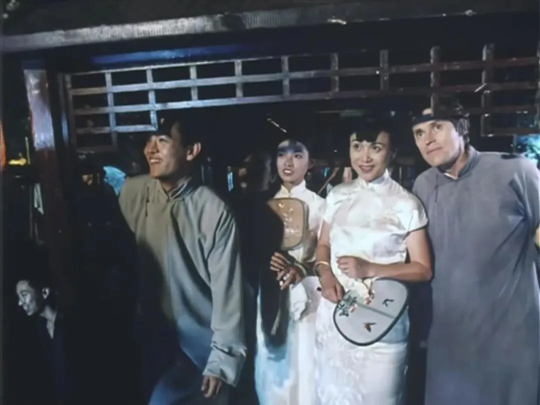 全片最精彩的一场戏,莫过于儿子和小妈、大姨太和传教士在众目睽睽下去看社戏的场景: