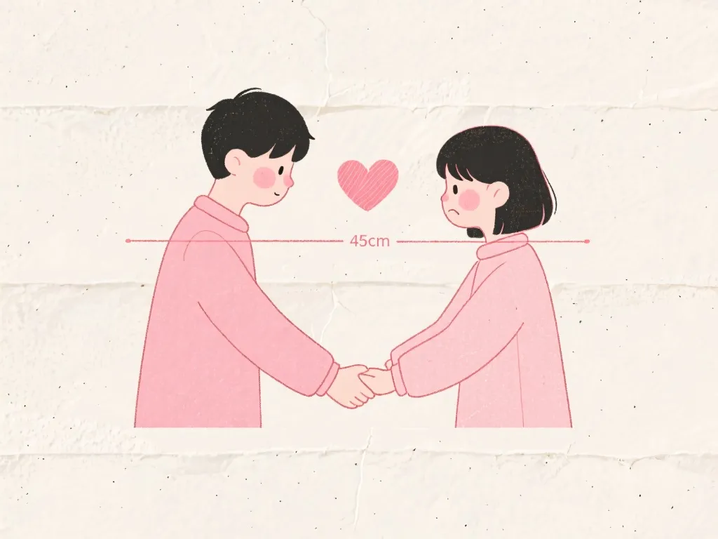 美国人类学提出“人际距离理论”,将人际物理空间分四个层级。最内层“亲密距离”,范围0到45厘米,是给亲密之人的专属领地。