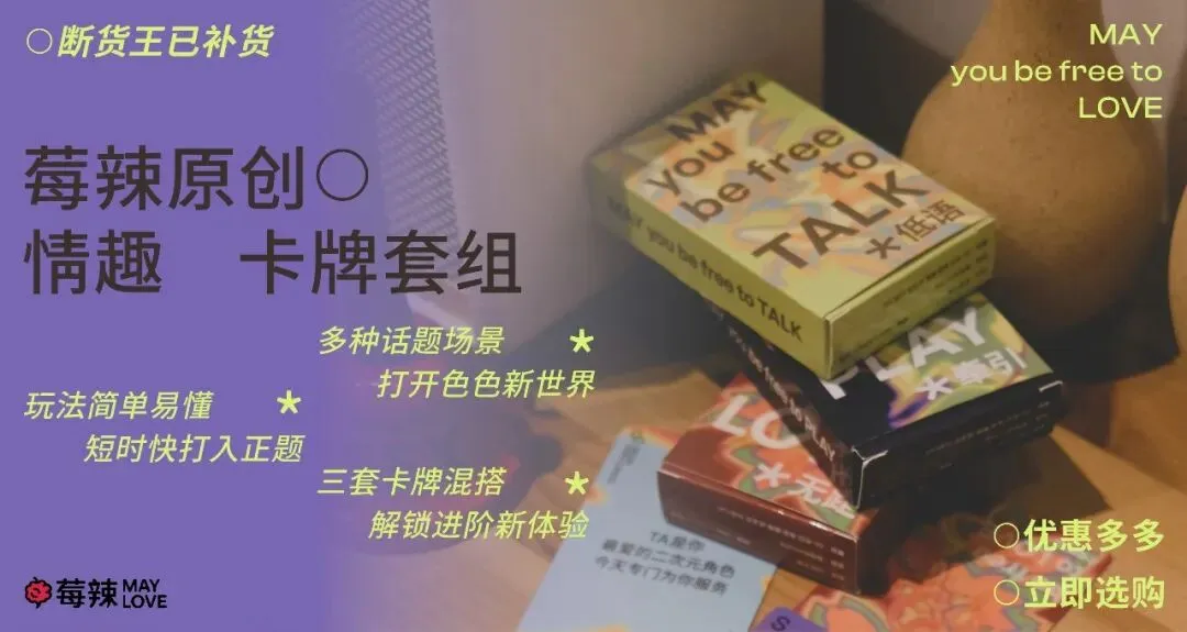 从陌路到相识,再到重新坠入爱河,我们都可以有一个契机,来重新认识你的爱人。莓辣“低语”卡牌,让你和爱人离彼此近一点,再近一点。还有“牵引”“无距”适配更多惊喜场景哦。