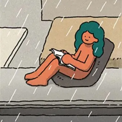 表情包 下雨天独自在家看书