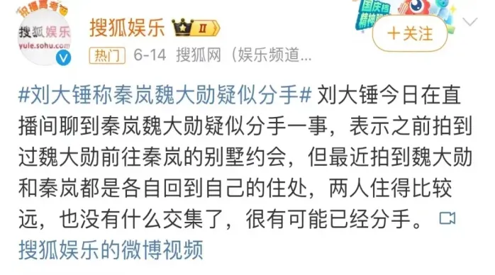 魏大勋父亲曾被问到对秦岚印象,他评价"是个好姑娘",被外界解读为默认。