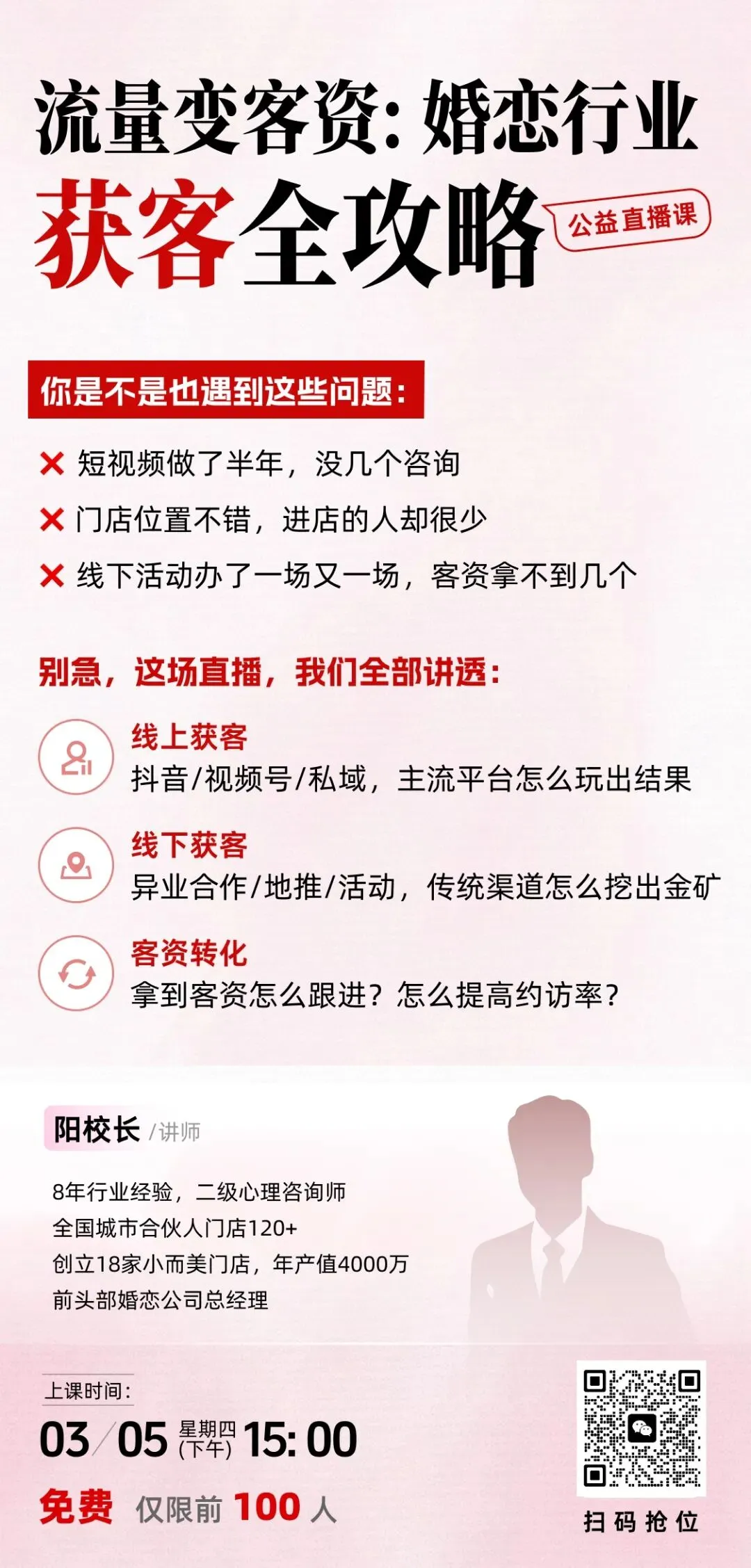 对象:婚恋机构创始人、门店店长/运营负责人、红娘主管、婚恋行业创业及从业者