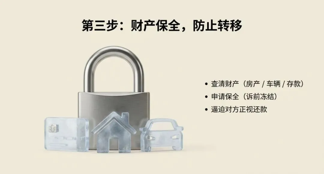 (三)及时维权,必要时申请财产保全