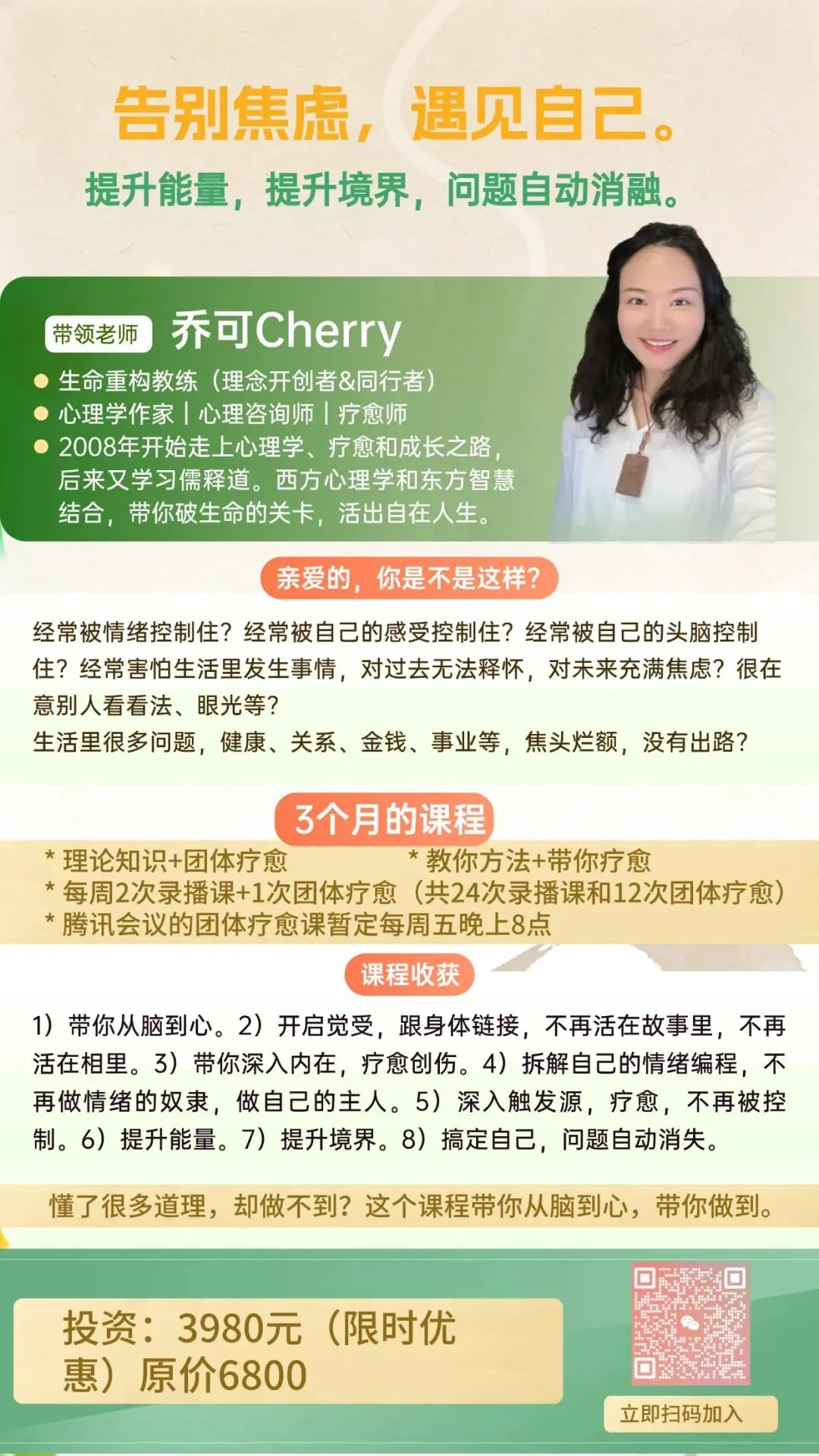 愿你能够通过生命里发生的每一件事情,回到你的内心,从心上化解烦恼和障碍,让自己自由自在,心无挂碍,无挂碍故。
