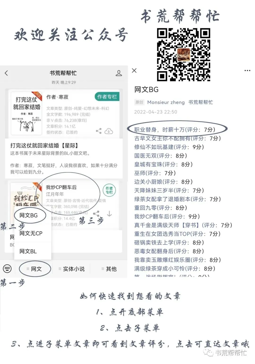10分★★★★★★★★★★:我觉得写的非常好,作者文风非常对我的胃口,会想着熬夜赶快看完,甚至会N刷,看完之后会收藏作者,还会把作者的其他文都全部看一遍的文。9分★★★★★★★★★☆:我觉得写的很好,也会想着熬夜赶快看完,看完之后也会看一下作者的其他文,但是不会想着收藏作者。8分★★★★★★★★☆☆:我觉得写的挺好,文笔流畅,会想快点看完,但是不会熬夜,看完之后不会刷作者其他文。7分★★★★★★★☆☆☆:我觉得写的算好,但是没有那么抓人,看书的时候可以随时停下来干点别的再回来看,没有那么强烈的赶紧看完的欲望。但是会把这本书全部看完。6分★★★★★★☆☆☆☆:我点进去看是因为觉得文案写的不错,可能文笔也还可以,能支撑着看下去,但是可能看到一大半就没什么看下去的欲望了,会留着,时不时的回去看看,文荒的时候会把它看完。