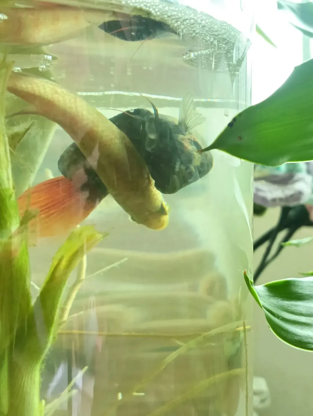 一日,我把斗鱼们分缸养了,因为打得厉害,有一条小点的鱼鳞都被啃了。